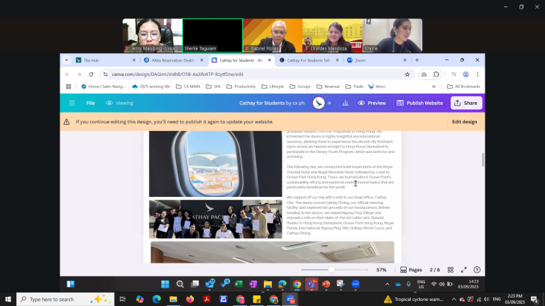 On September 3, 2025, a virtual meeting was held via Zoom between the University of Perpetual Help System DALTA (UPHSD) and Cathay Pacific, Hongkong to explore potential partnership opportunities.