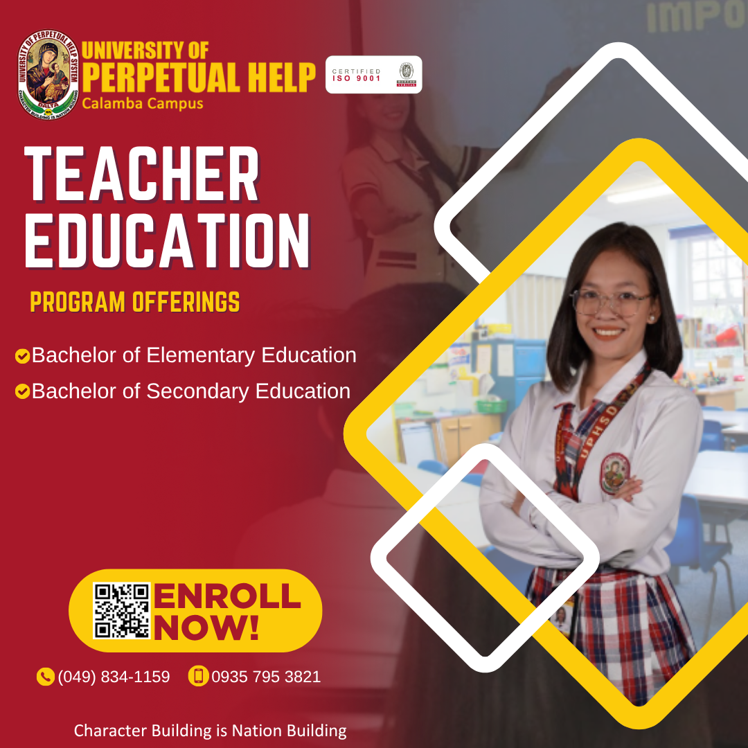 The University of Perpetual Help System DALTA College of Education is dedicated to develop future teachers of excellence and integrity with the skills necessary to explore and pursue solutions to current education issues and concerns. The curriculum provides many opportunities for classroom observation, projects, student teaching internships, and community engagement programs under the guidance of our nurturing and highly qualified faculty and staff. We strive to prepare our graduates to pass the Licensure Examination for Teachers and to become effective educators ready to meet any challenge with compassion, wisdom, and strength of character to excel in the dynamic and evolving field of education.