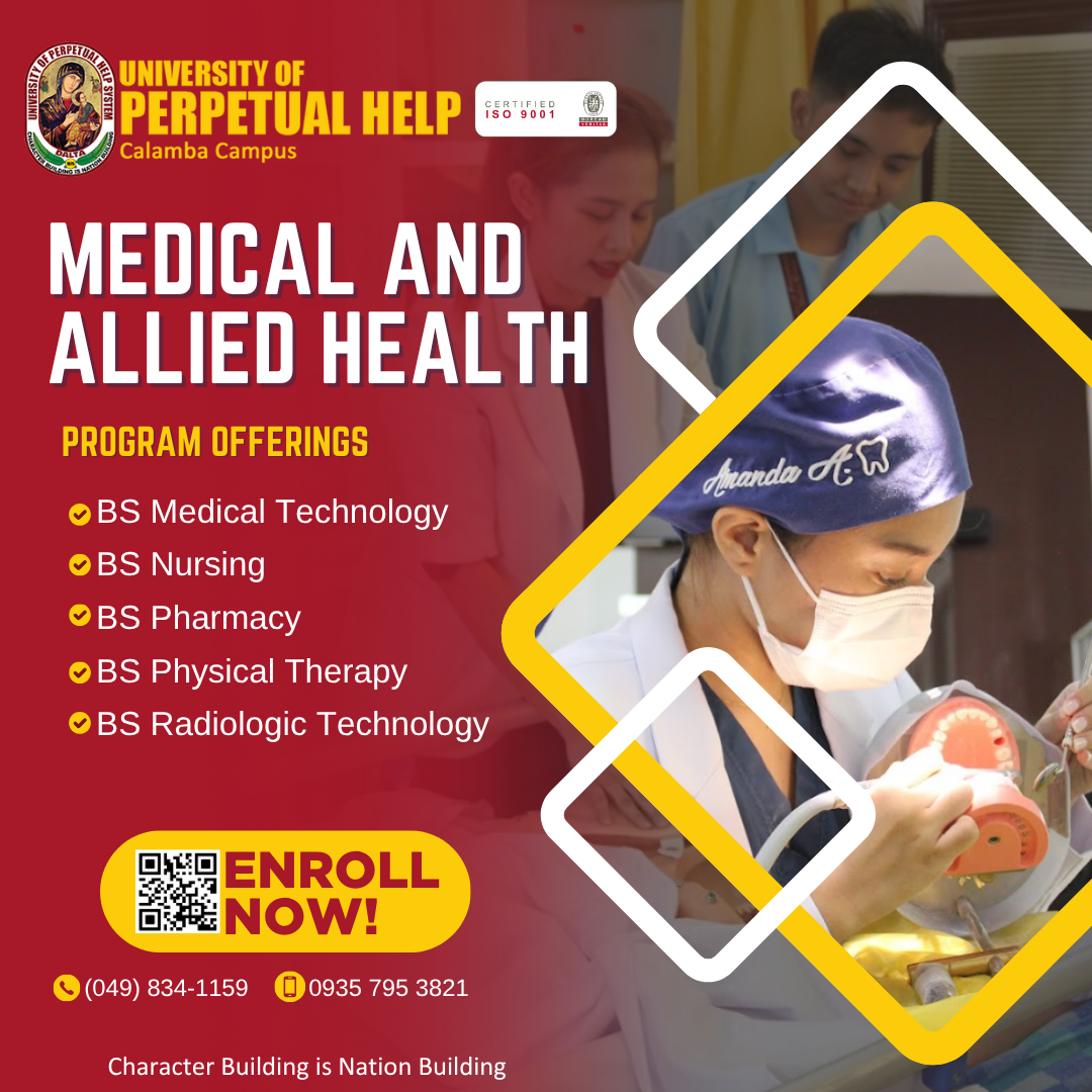 The Medical and Allied Health offers 10 programs which provides high quality of education and designed to equip students with the essential learning that they need in the medical field. Provided with modern facilities and equipment together with different scientific techniques, Medical and Allied Health programs allow their students to hone their skills and knowledge in a realistic settings. It also prepares them to become competent and caring medical practitioners here and abroad. Our main purpose is to promote compassionate, ethical, and competent medical practitioners ready to help people achieve healthy productive lives, advance knowledge in the medical sciences, and be informed advocates of change for a lifetime of achievement in the field of medicine.