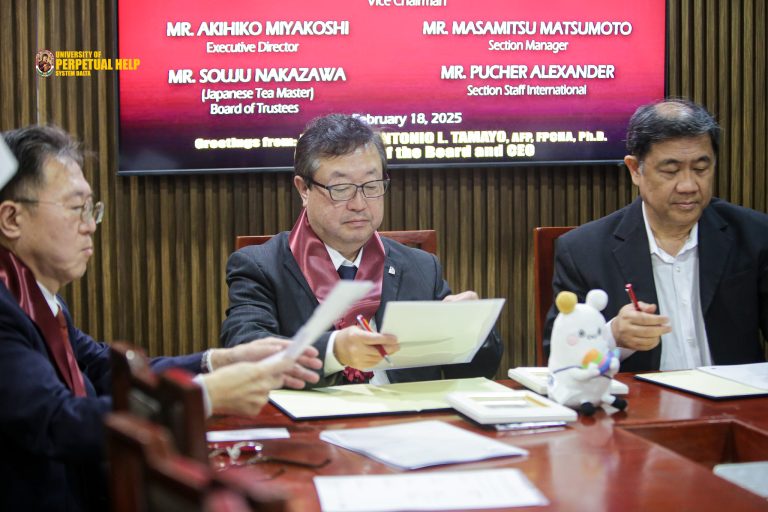 On February 18, 2025, the University of Perpetual Help System DALTA (UPHSD) formalized a transformative partnership with Bunkyo University and the Bunkyo University Foundation through the signing of a Memorandum of Understanding (MOU) at UPHSD’s Las Piñas campus. Led by UPHSD President Dr. Anthony Jose M. Tamayo, the event was attended by key officials, including Dr. Arnaldo S. De Guzman, School Director of the Las Piñas Campus; Dr. Reno Rayel, School Director of the Molino Campus; and Dr. Gabriel Archimedes Y. Flores, Director of Institutional Linkages. The event also welcomed a distinguished Japanese delegation, including Mr. Takashi Shinkuma and four esteemed representatives from Bunkyo University. This collaboration aims to strengthen academic and cultural ties between the institutions, fostering joint research initiatives, student and faculty exchange programs, and deeper cross-cultural engagement. On February 19, 2025, Dr. Tamayo officially signed the MOU, marking the beginning of a promising alliance. The Japanese representatives expressed their appreciation by leaving heartfelt messages in the university’s guestbook, symbolizing a strong foundation for future cooperation and shared educational endeavors.
